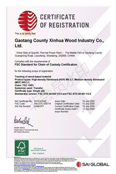 Gaotang County Xinhua Wood Industry Co., Ltd. werd opgericht in april 2010 met een maatschappelijk kapitaal van 11 miljoen yuan. Het heeft een oppervlakte van ongeveer 76.600 vierkante meter, inclusief een bouwoppervlakte van ongeveer 22.000 vierkante meter. Het bedrijf is gevestigd in Quanlin Ecological Park van Gaotang County Economic Development Zone, tegenover 105 National Road in het oosten, 308 National Road in het zuiden en Qingyin Expressway in het noorden. Ons bedrijf is een professionele onderneming die de productie, verwerking en verkoop van panelen op houtbasis integreert, met geavanceerde productieapparatuur en een sterke technische werking. Het bedrijf heeft meer dan 200 werknemers, waaronder meer dan 50 senior technische managers. De toonaangevende producten zijn 0,8-25 mm vezelplaat met gemiddelde en hoge dichtheid, spaanplaat. Georiënteerde strengplaat, vuurvaste plaat, vochtbestendige plaat, enz., met een jaarlijkse productie van 500.000 kubieke meter. De producten worden voornamelijk verkocht aan Hebei, Henan, Jiangsu, Shenyang, Sichuan en andere 20 provincies. Onze producten hebben de ISO9001-certificering van het kwaliteitssysteem, de FSC-certificering van het bossysteem en SGS internationale certificering. Producten worden geëxporteerd naar Europa, Amerika, Afrika, het Midden-Oosten , Zuid-Azië en andere landen en regio's. Xinhua Wood Industry heet mensen in binnen- en buitenland van harte welkom om zaken te bezoeken en te onderhandelen!